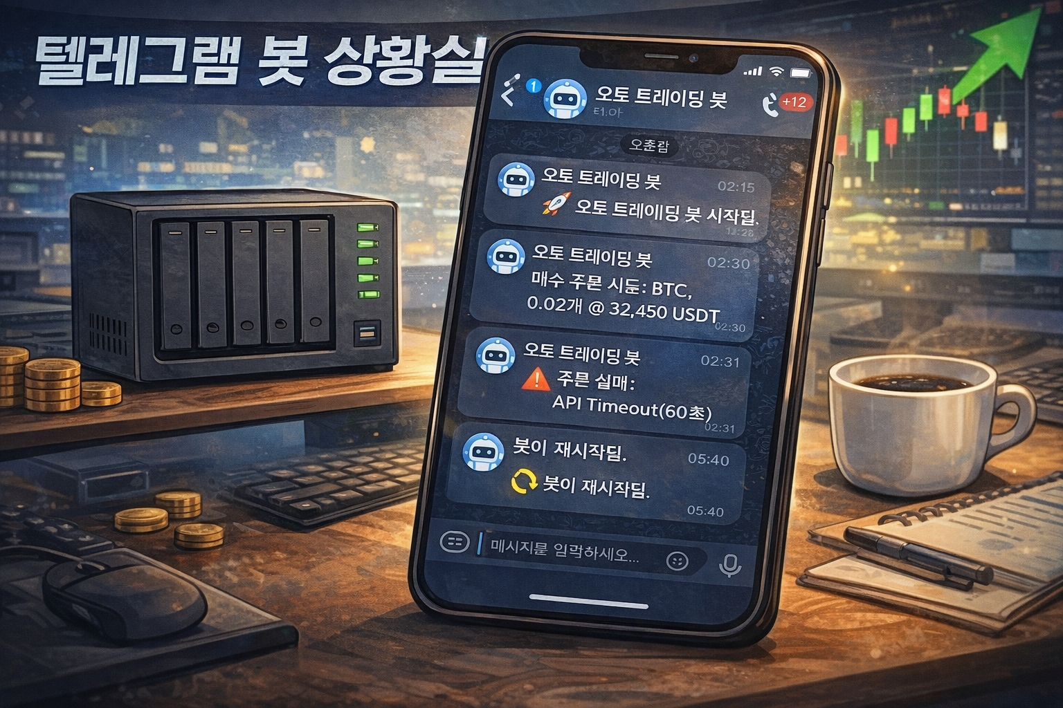 봇이 시작하면 시작했다고, 재시작되면 재시작됐다고, 주문을 시도하면 시도했다고, 실패하면 실패했다고(가능하면 이유까지). 최소한 이 흐름이 쌓이면, 운영이 달라진다.